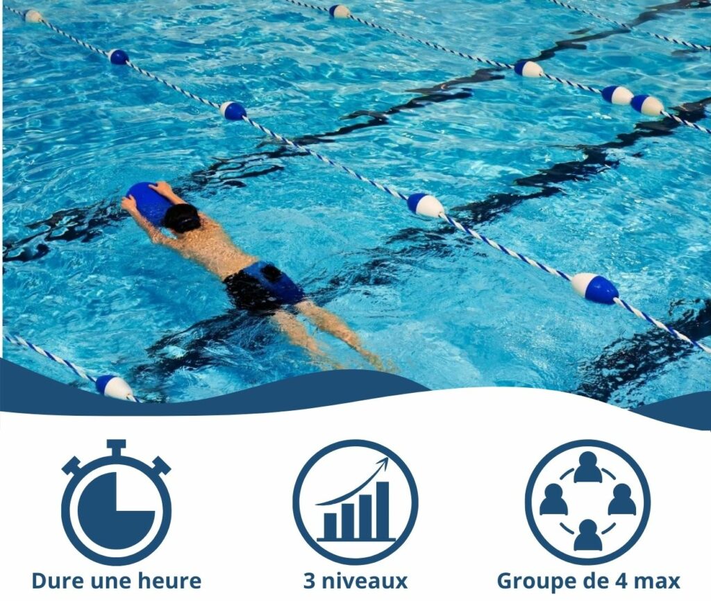 Des séances encadrées par un maître-nageur diplômé et expérimenté, pour progresser efficacement, prendre confiance et retrouver le plaisir de nager.